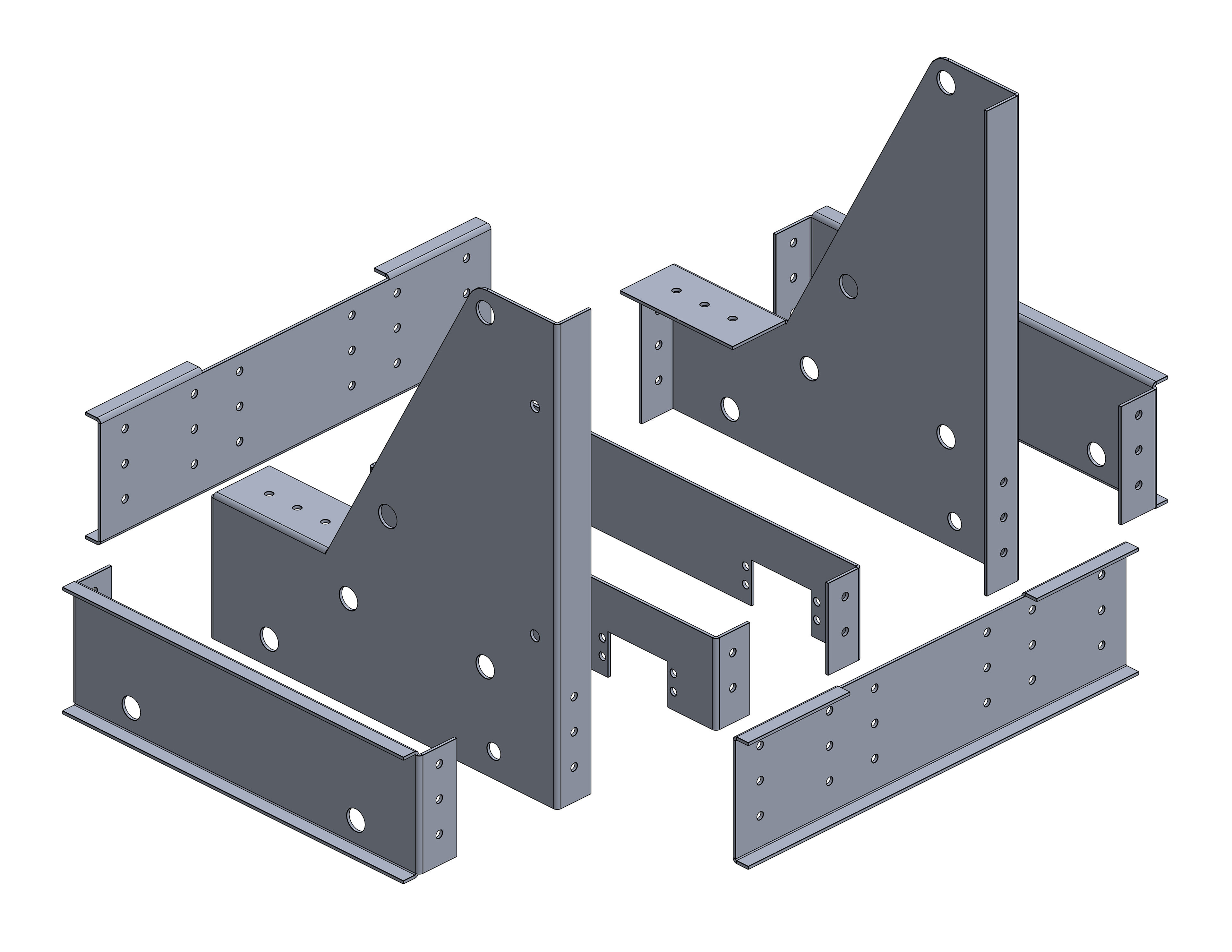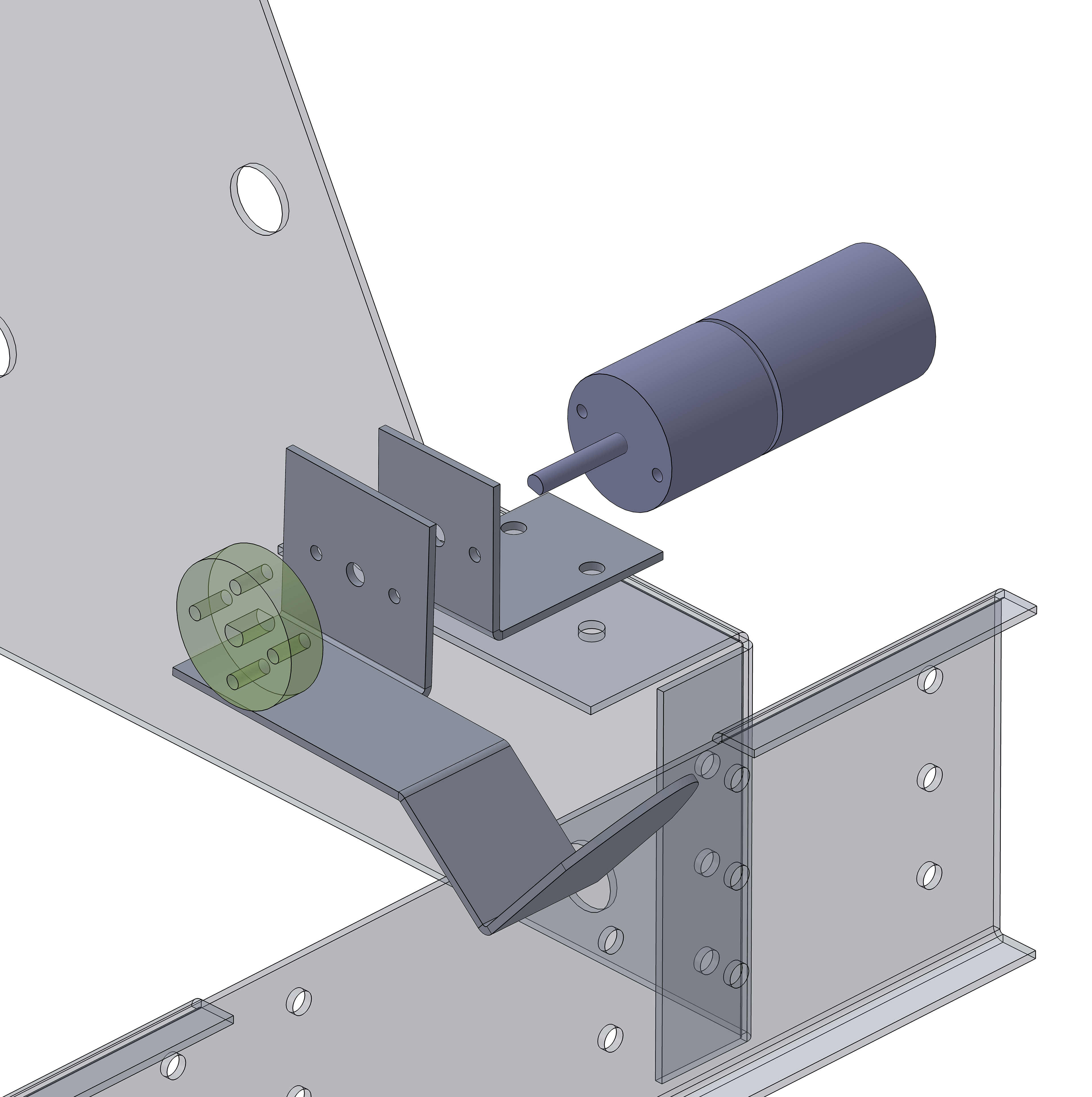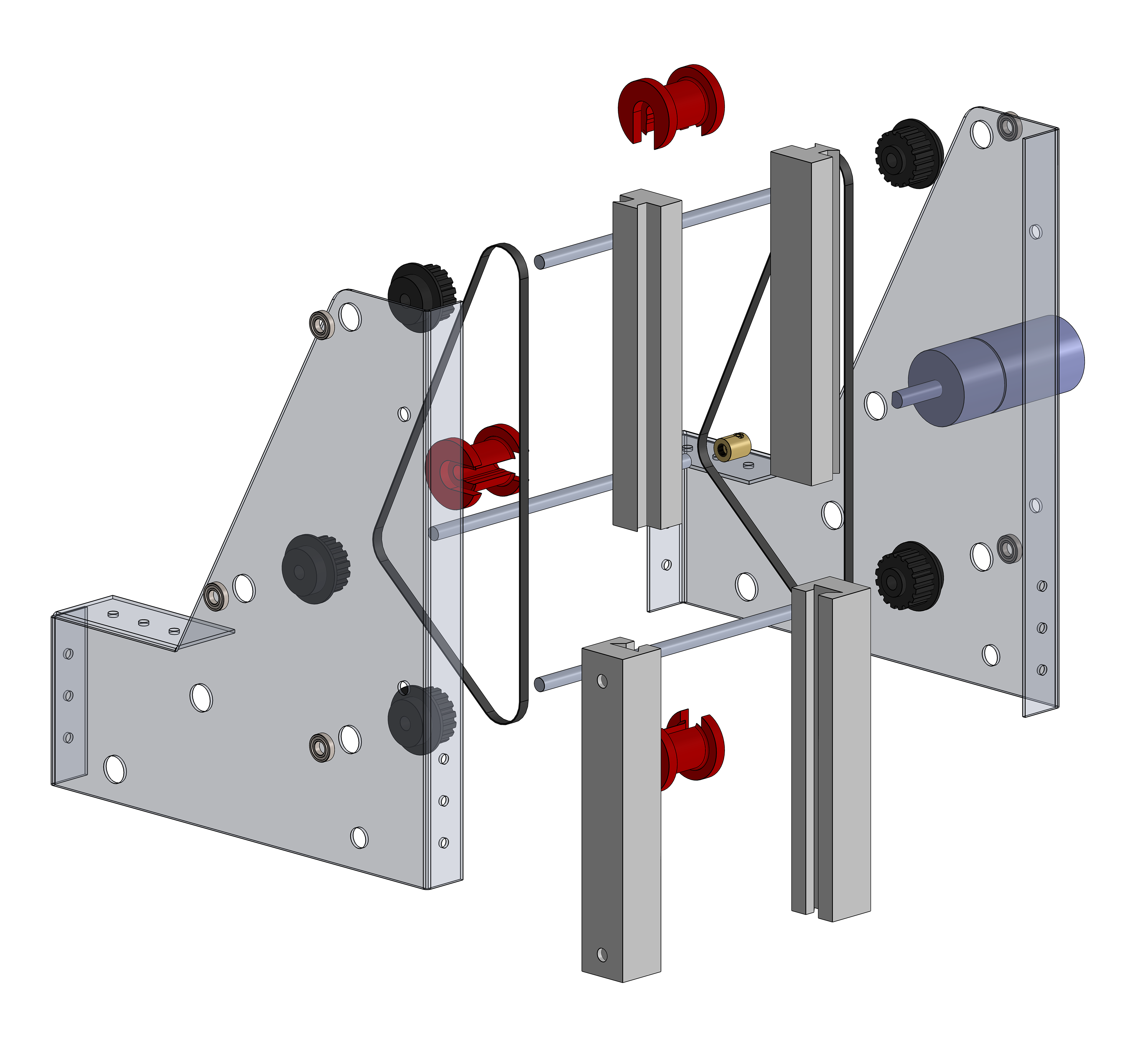 Exploded view of lift mechanism (fasteners not pictured for visual clarity)