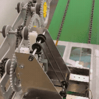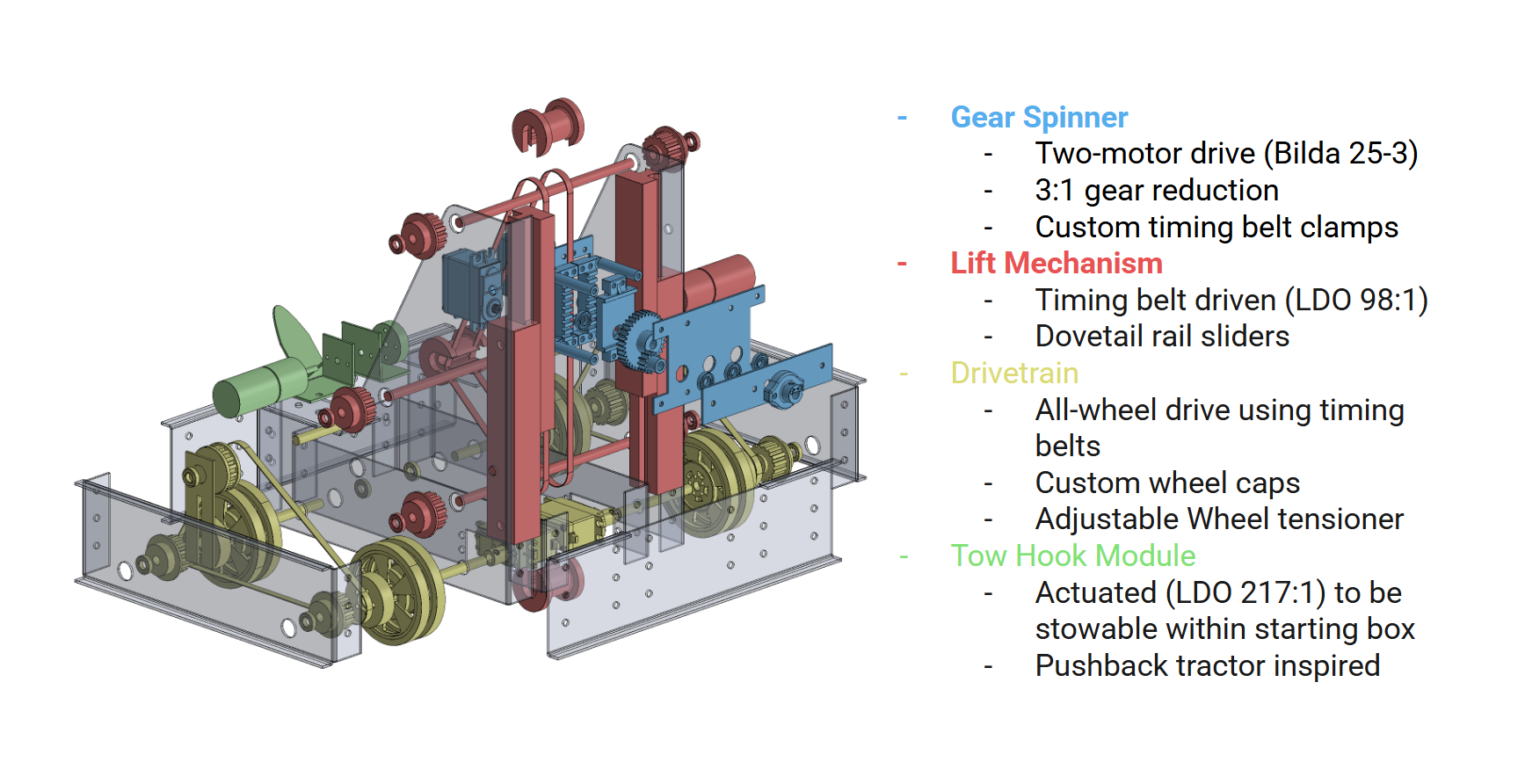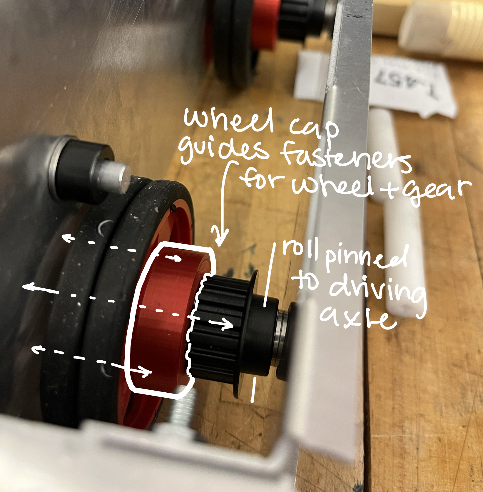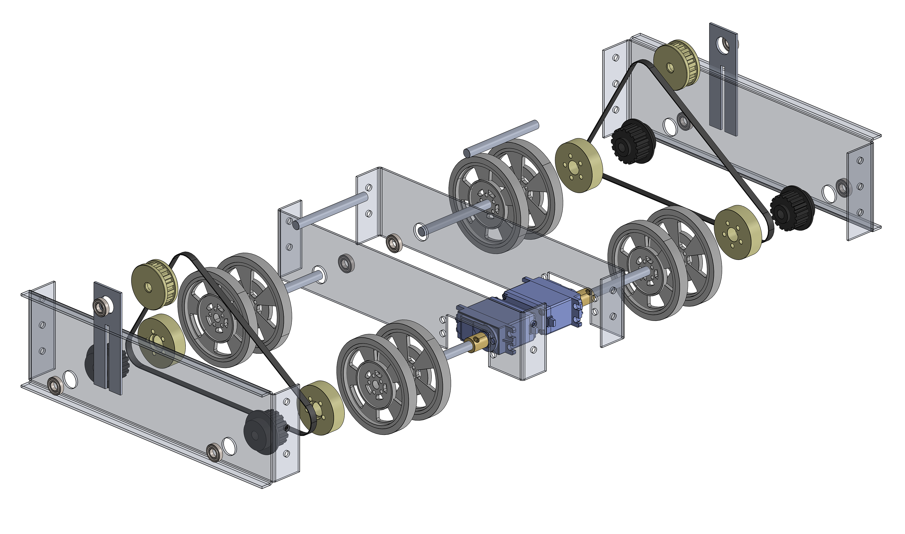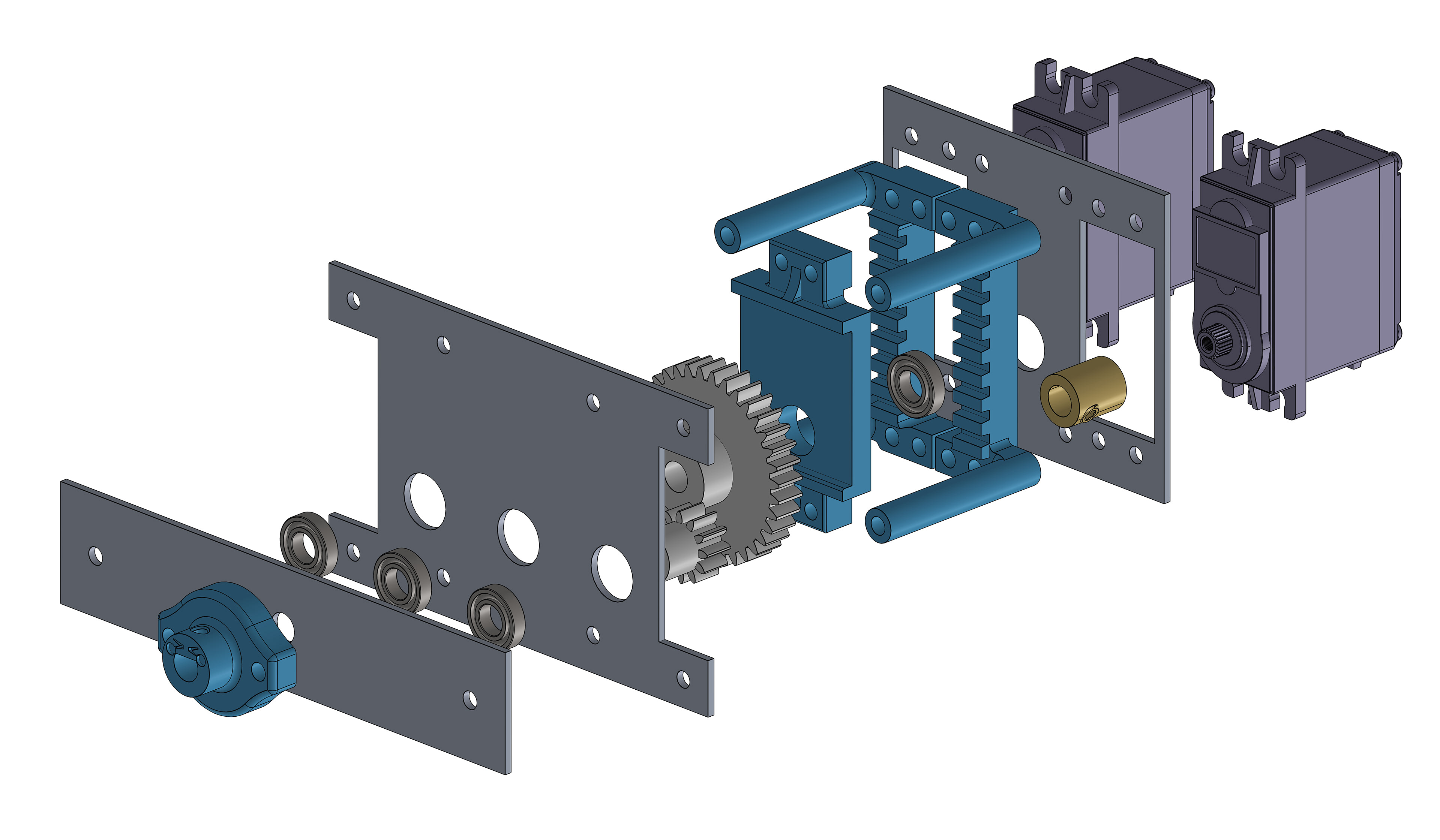 Exploded view of gear spinning mechanism (shafts and fasteners not pictured for visual clarity)