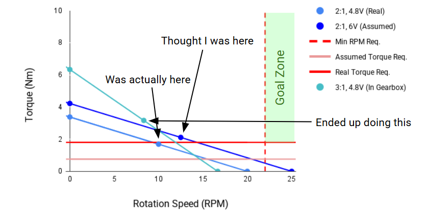 Torque-speed curve comparisons against torque requirements of game obstacles